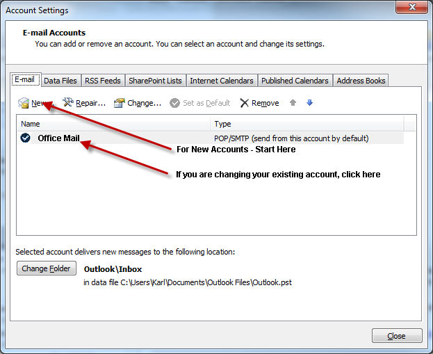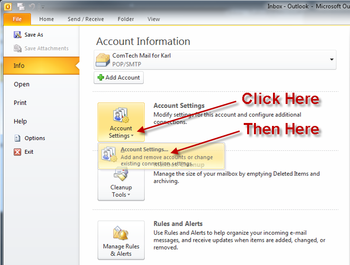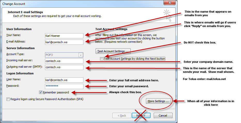 ComTech Maill Settings for Office 2012